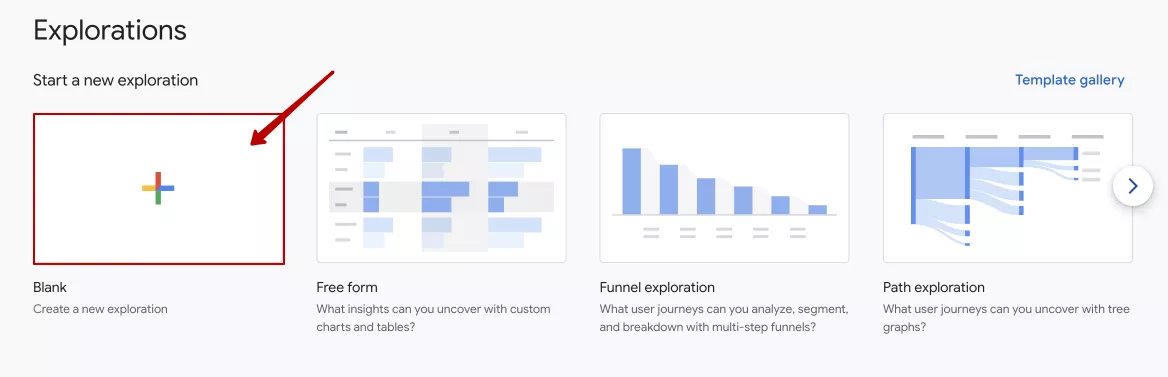 Зайдите на вкладку Explore (Исследования) в Google Analytics 4.
