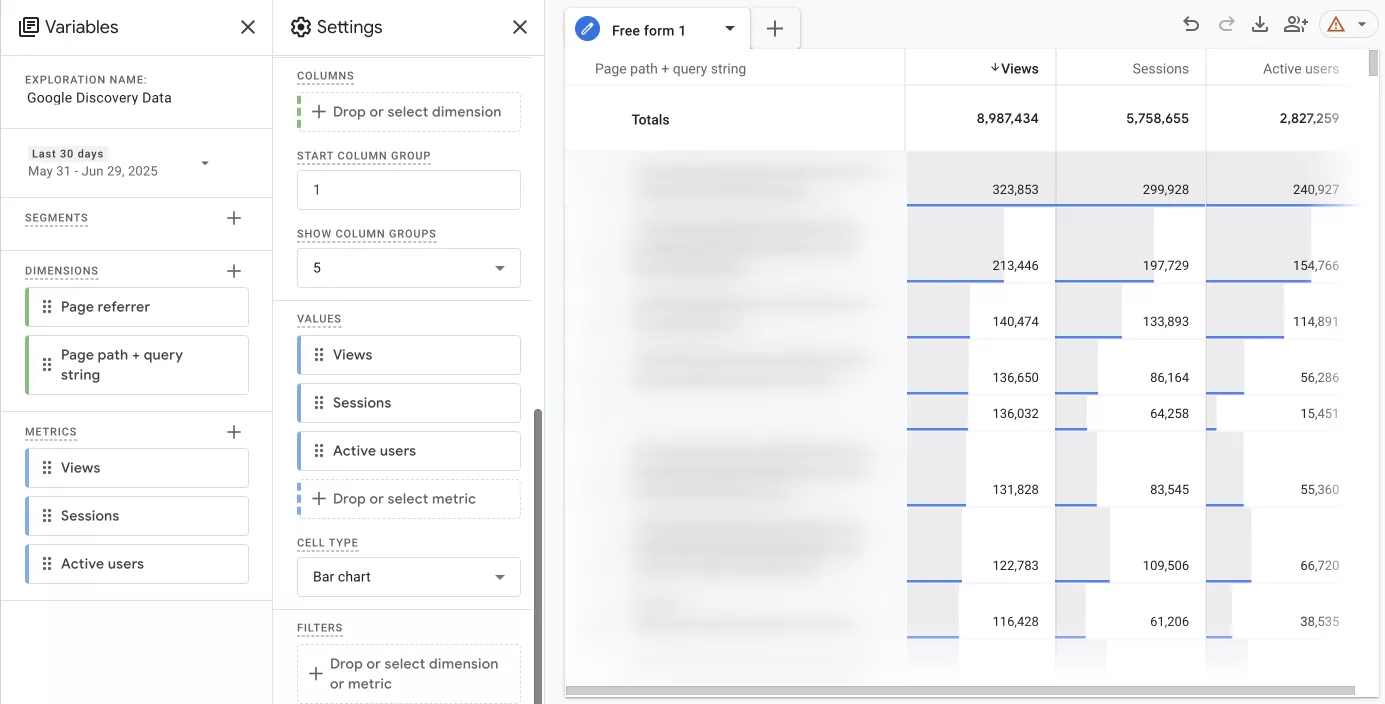 Чтобы получить детальные данные о трафике из Google Discover по страницам, лучше всего создать индивидуальный отчет в GA4.