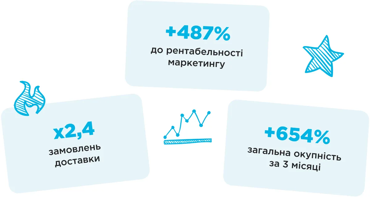 Когда фундамент был готов, команда перешла к активному масштабированию. К системе привлечения подключили Google Ads, а для работы с лояльной базой — Viber- и SMS-рассылки. Дополнительно точечные медийные активности поддерживали узнаваемость бренда и помогали сбалансировать воронку.