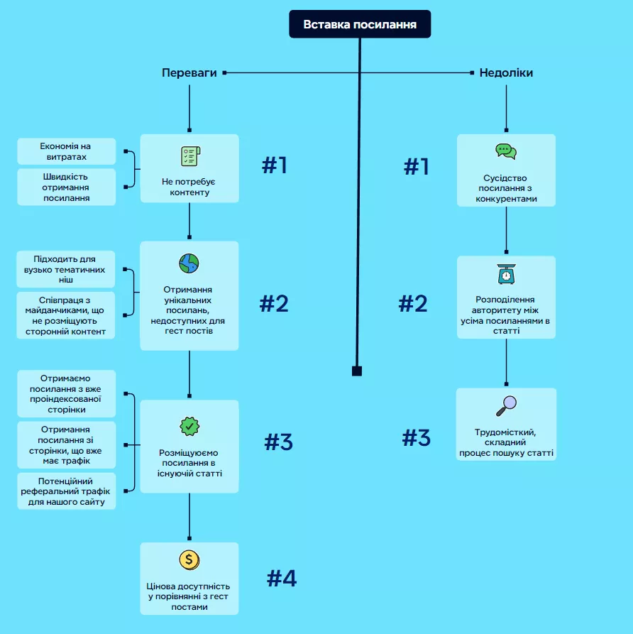 Однако, в отличие от Guest Posting, Link insertion не требует подготовки контента, то есть написания статьи. Из других преимуществ: