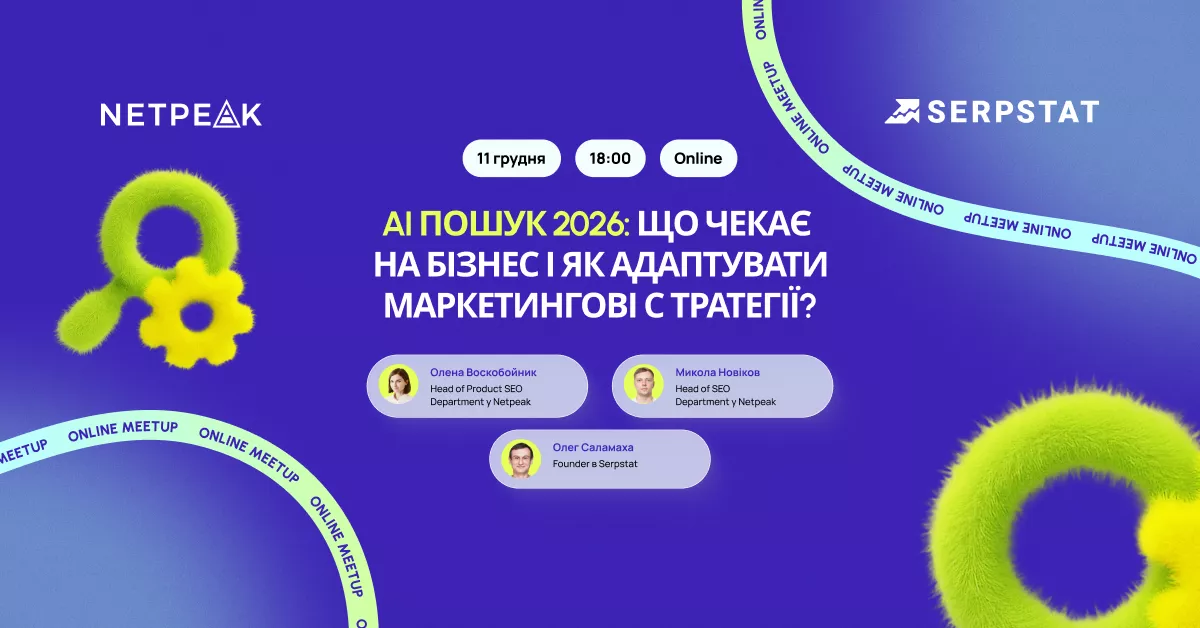 11 грудня о 18:00 відбудеться відкритий meetup від Netpeak та Serpstat про майбутнє пошуку та AI-трансформацію маркетингу.