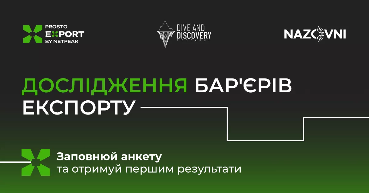 Альянс провідних експортних консультантів Prosto Export by Netpeak, Nazovni та дослідницької компанії Dive & Discovery Research запускає “першу в Україні комплексну аналітику готовності бізнесу до експорту в умовах війни. Мета — виміряти реальну вартість експортних бар'єрів для економіки та знайти мільярдні резерви зростання.