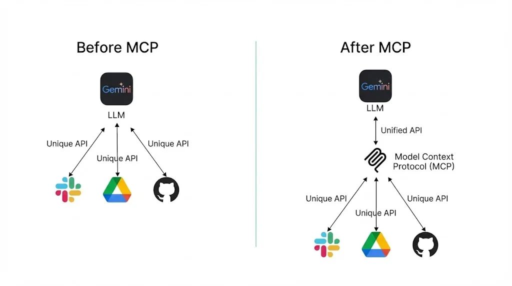 Model Context Protocol діє як міст, даючи змогу штучному інтелекту вийти за межі статичних знань і стати динамічним агентом, який може отримувати поточну інформацію й вживати заходів, роблячи її точнішою, кориснішою та автоматизованою.