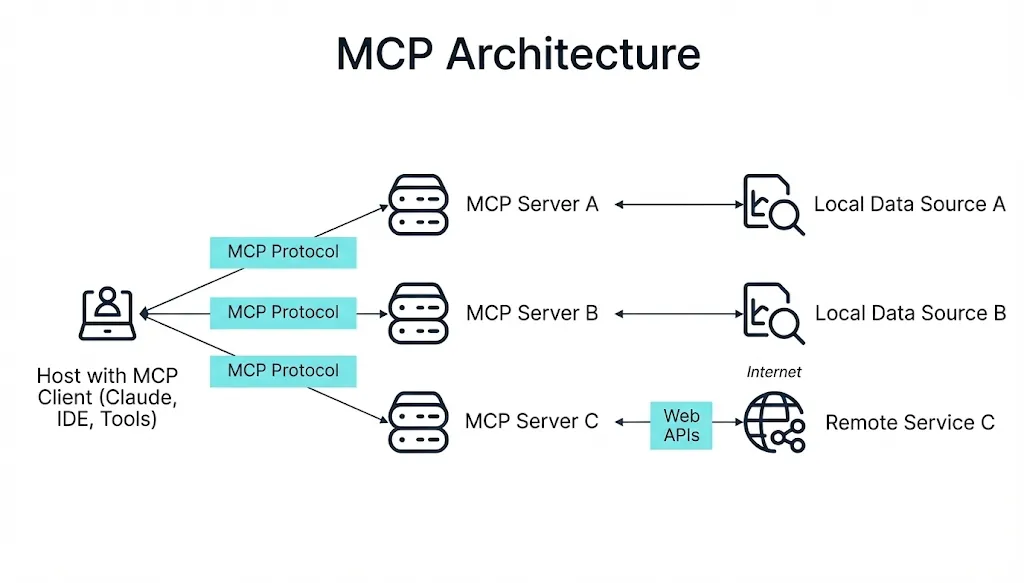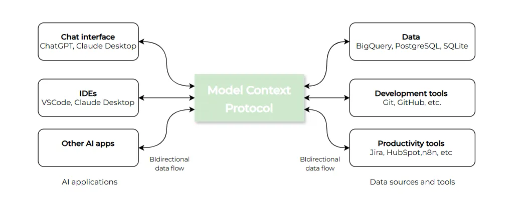 Model Context Protocol (MCP) — це відкритий стандарт, який дає змогу AI-моделям підключатися до зовнішніх систем: баз даних, рекламних платформ, CRM-систем або будь-яких інших сервісів.