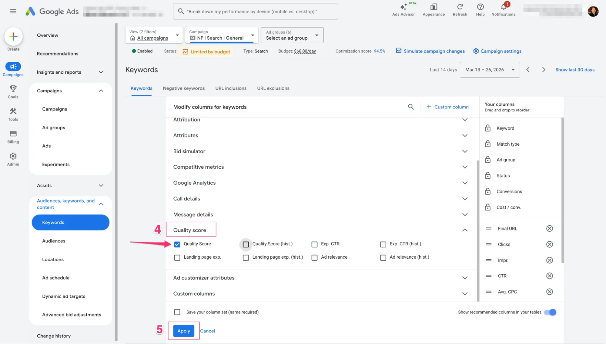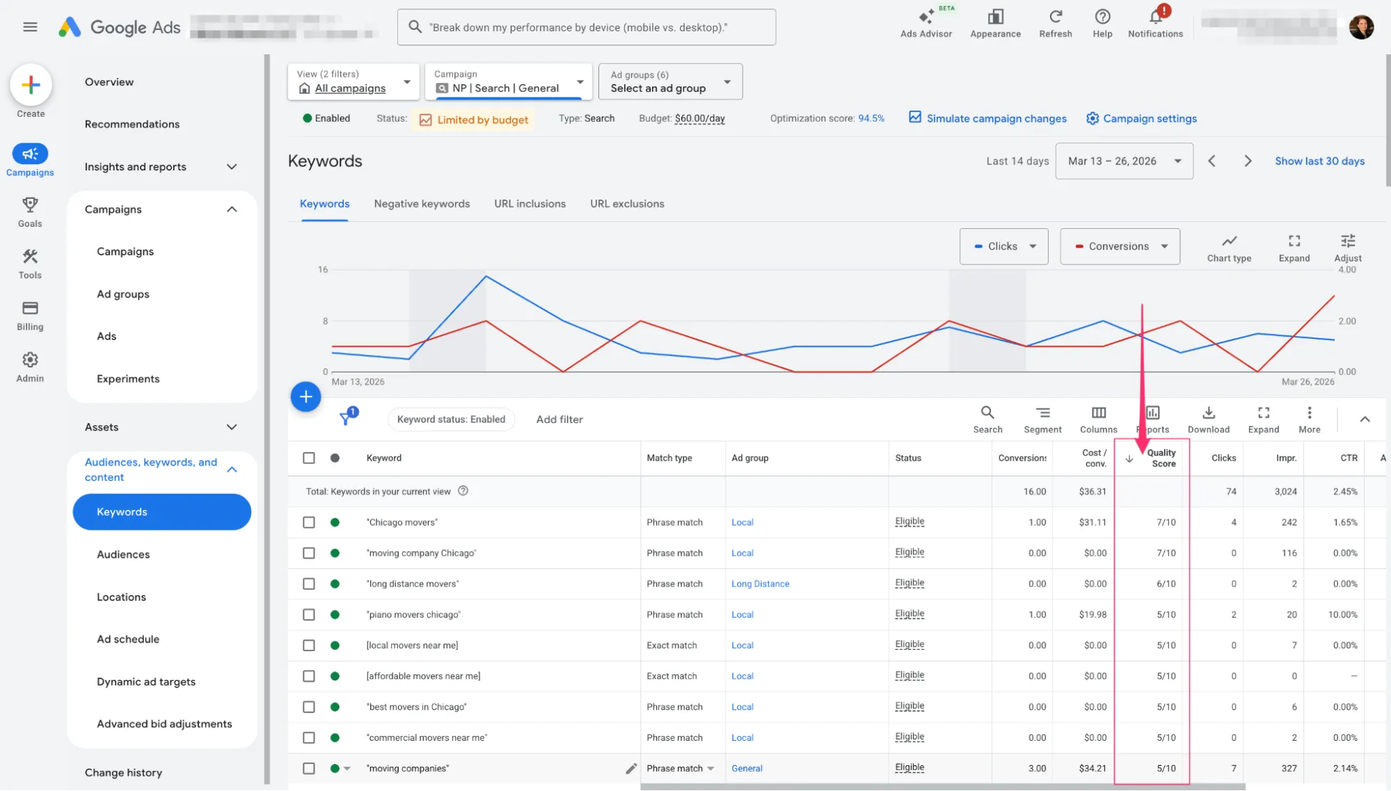 Якість замість високих ставок: пам’ятайте, що в пошуку не обов’язково платити більше за всіх, щоб бути першим. Працюючи над Quality Score (релевантністю та якістю сторінки), ви отримуєте вищі позиції за менші гроші.