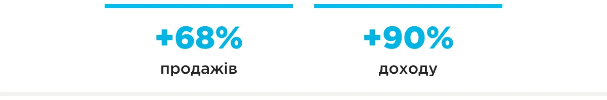 Наша стратегія дала змогу збільшувати бюджети й водночас не втрачати ефективність та рентабельність. У порівнянні з минулим роком бюджети зросли на 80%, одночасно дохід зріс на 90%, а кількість продажів — на 68%.