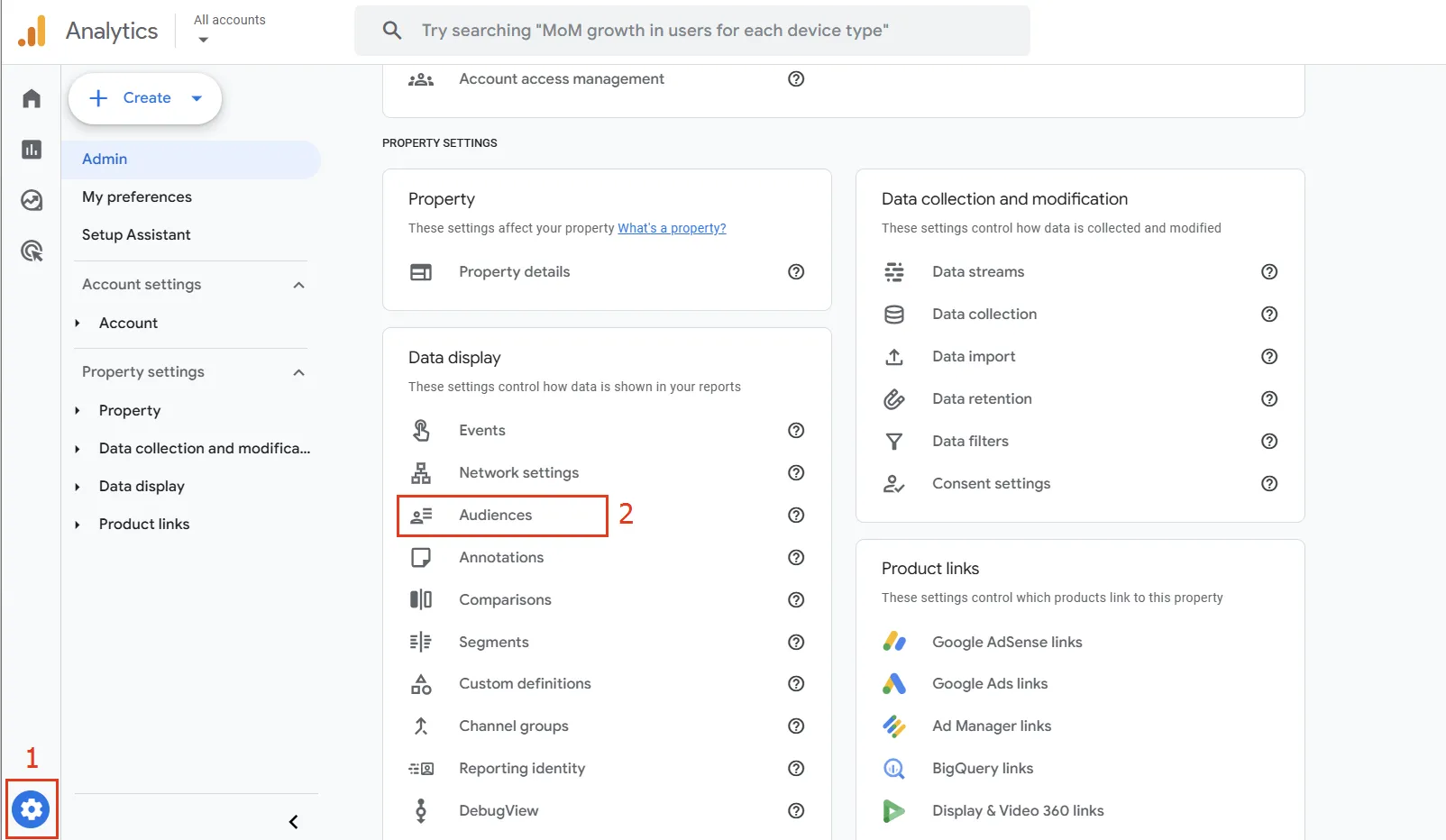 У стовпці Data display (Відображення даних) оберіть пункт Audiences (Аудиторії).