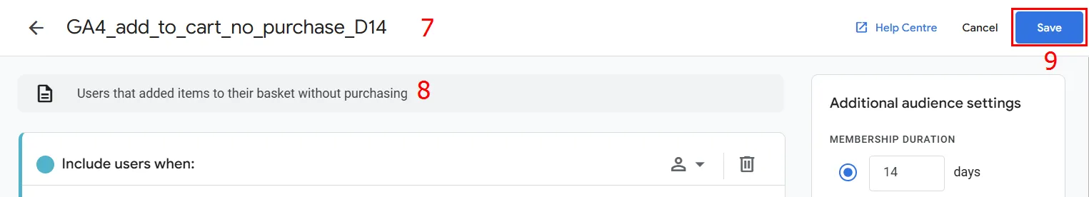 Дайте зрозумілу та структуровану назву. Це допоможе швидко орієнтуватися в аудиторіях при використанні їх у Google Ads, особливо коли їх кількість зростає.